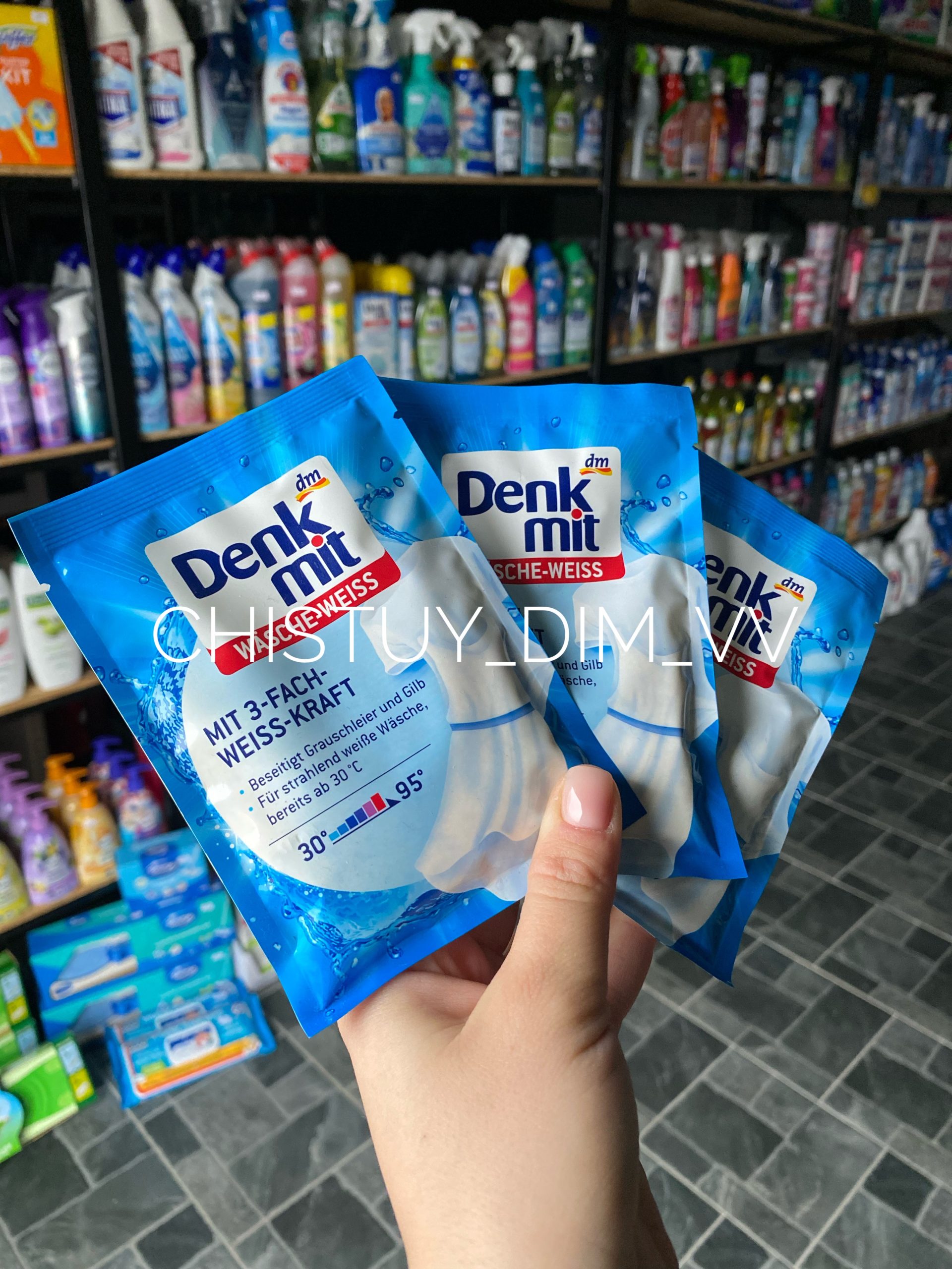 З часом усі білі речі починають жовтіти або набувають сірого відтінку. З цією проблемою ідеально справиться засіб від німецького бренду Denkmit, завдяки якому сіра білизна відбілюється у три рази краще. Підходить для всіх типів тканин, крім вовни та шовку.