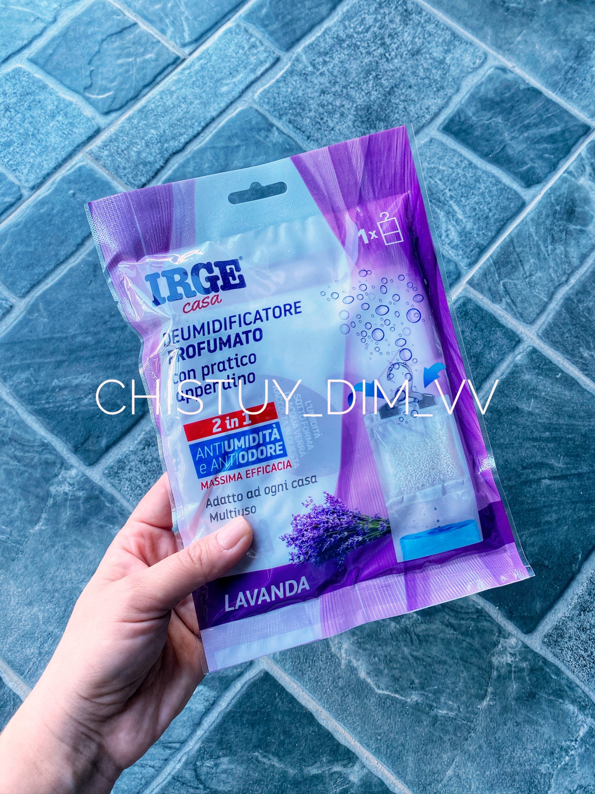 Ароматизований осушувач повітря з практичною вішалкою поглинає вологу та запобігає неприємним запахам. Високоефективний засіб 2-1. Надає речам приємного аромату та запобігає утворенню цвілі. Призначений для підвішування в будинку, шафі та тумбі, адже має міцний вішак з якісного пластику. Захищає ваш дім від вологи, конденсату, плісняви та неприємних запахів. Зайва волога поглинається ароматизованими полімерними гранулами, та кондинсується у нижній частині поглинача. Тривалість: 3-6 тижнів (залежно від рівня вологості).