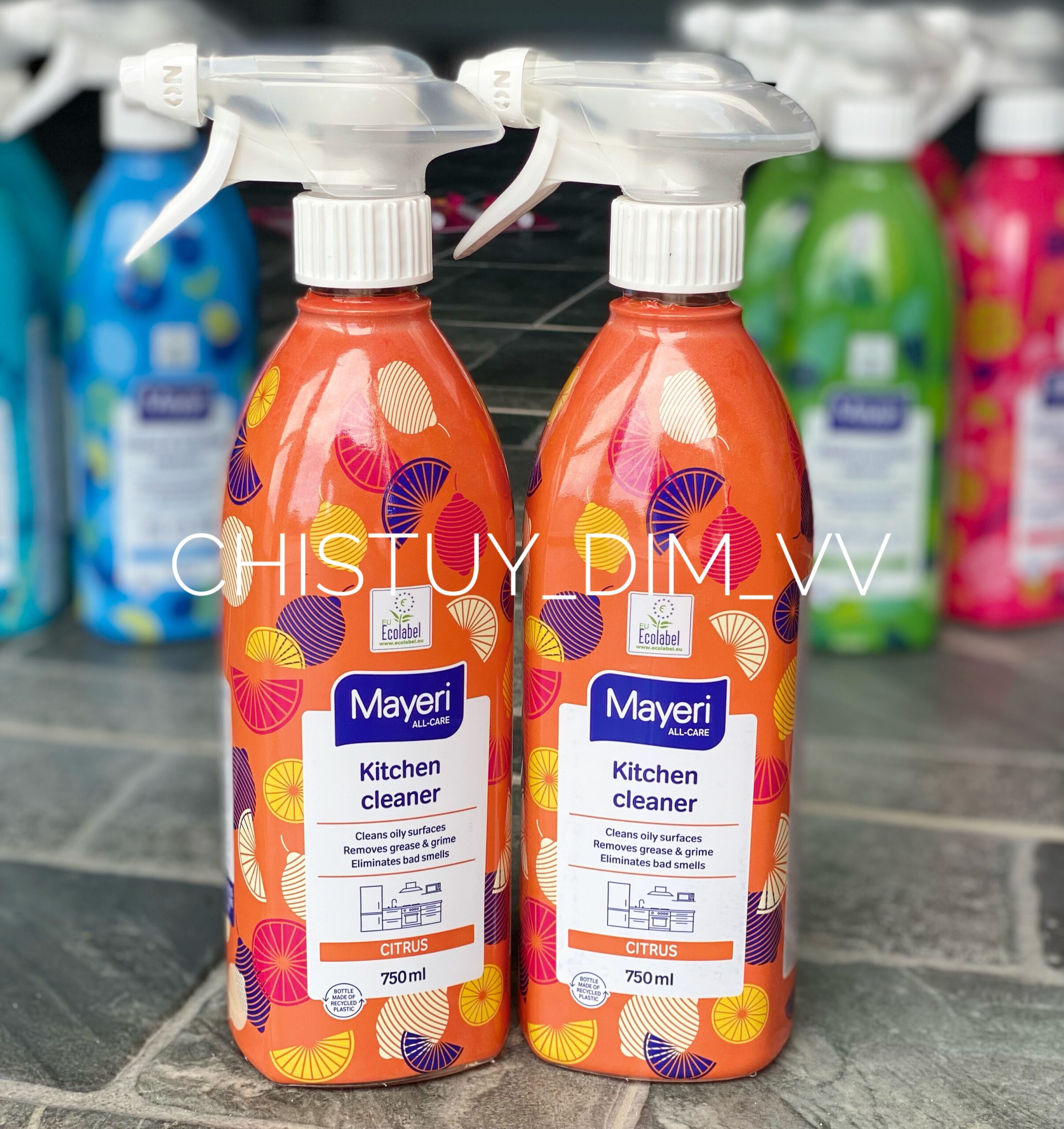 Щоденне підтримання чистоти та блиску поверхонь на кухні — з екологічним спреєм естонського бренду Mayeri! Він ефективно, легко та швидко видаляє масні плями, жир, бруд без пошкодження та розводів, нейтралізує неприємні запахи, наповнює кімнату освіжним ароматом лимона. Продукт відзначений екомаркуванням Євросоюзу Ecolabel.