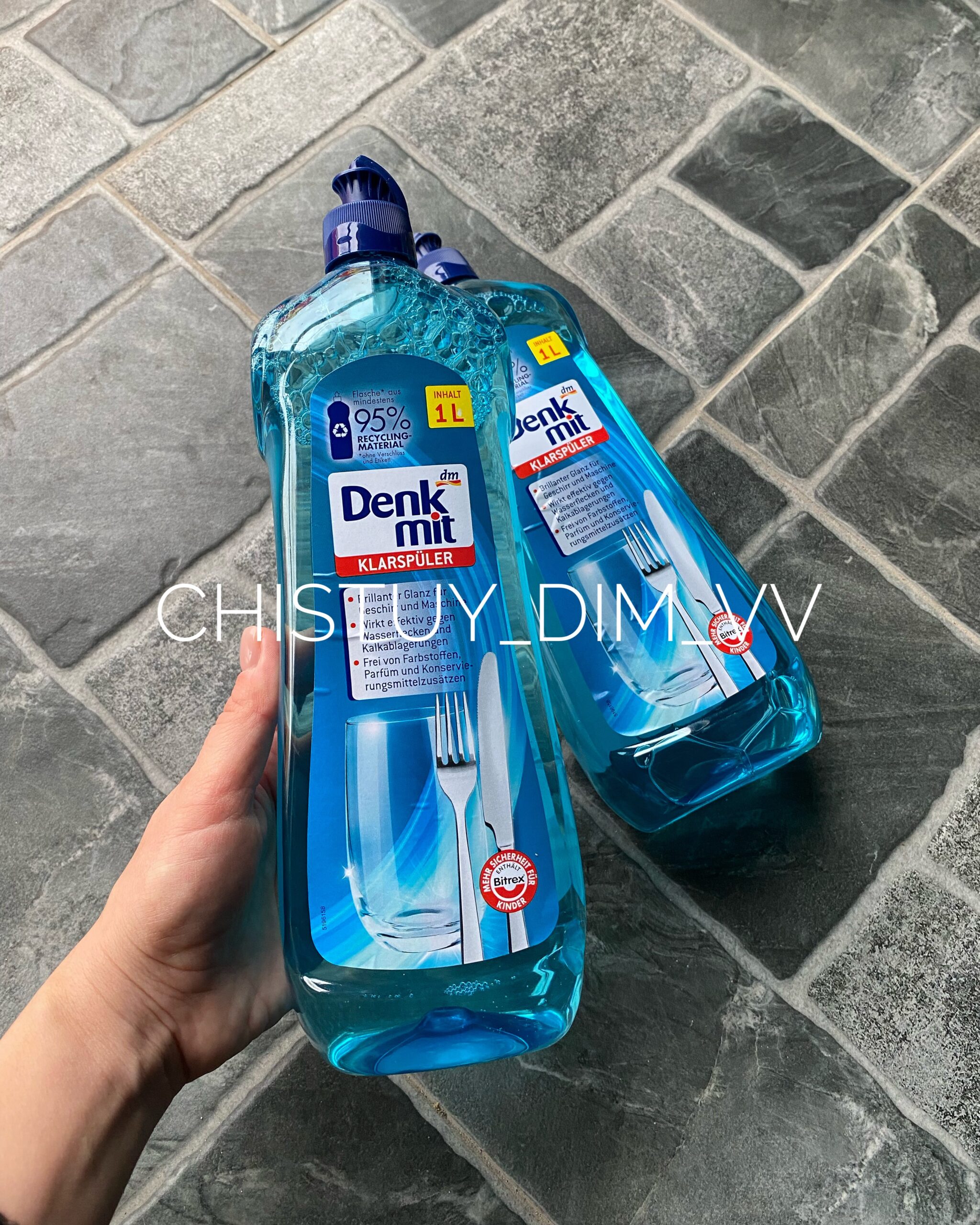 Німецький ополіскувач для посуду та посудомийних машин Denkmit надасть чистого та сяючого вигляду вашому посуду, при цьому не пошкодивши художні малюнки на ньому. Ополіскувач Denkmit Klarspüler містить спеціальну формулу, яка забезпечує ефективне видалення слідів води на посуді, забезпечуючи кристальну чистоту та блиск. Цей засіб має високу концентрацію і дуже економний у використанні, оскільки вам потрібна лише невелика кількість для кожного циклу миття. Ополіскувач підходить для будь-яких типів посудомийних машин, забезпечуючи ідеальну якість миття. Додатково ополіскувач має антибактеріальні властивості, що забезпечує високий рівень гігієни під час миття посуду.